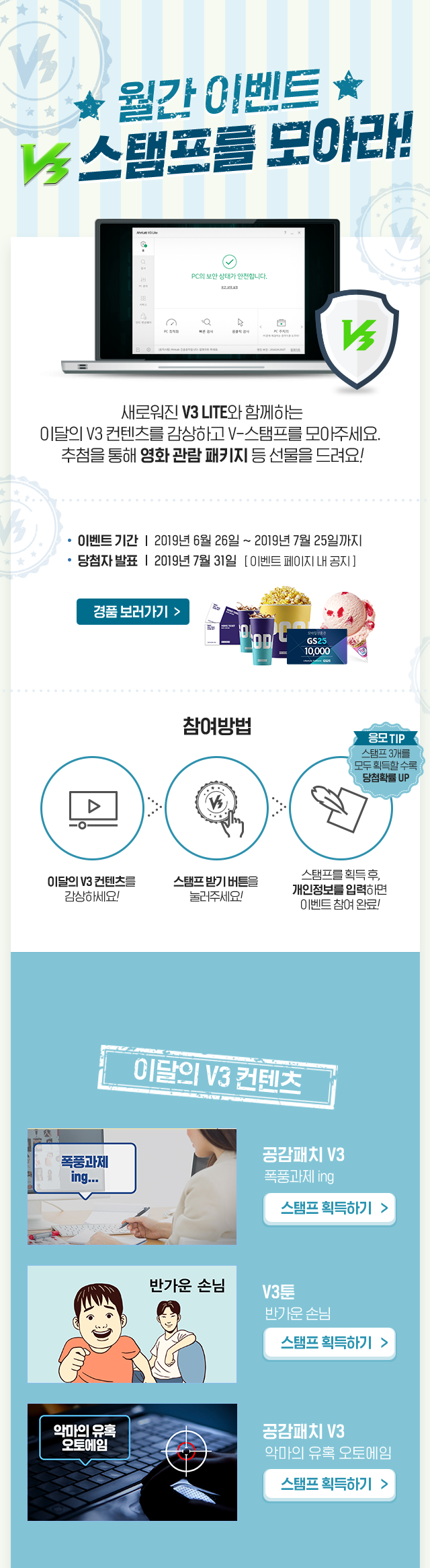새로워진 V3 Lite와 함께하는 이달의 V3 컨텐츠를 감상하고