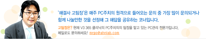 Mr.고 : 안녕하세요. V3 365 클리닉 PC주치의 고팀장입니다.