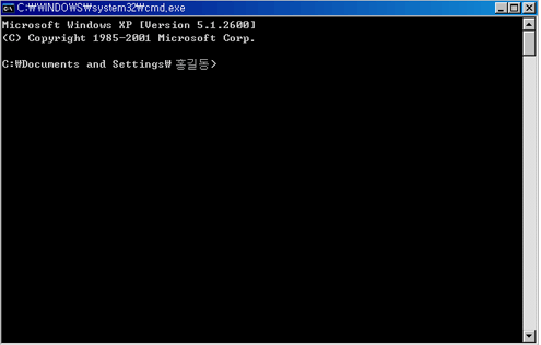 ② ‘ cmd ‘를 입력하고 나면 아래의 명령 프롬프트가 뜹니다. 이 창에서 아래의 명령어를 한줄 씩 입력하고 Enter 키를 누릅니다.