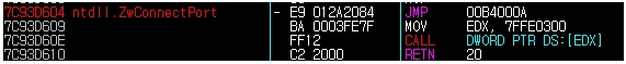 휴리스틱 진단을 우회하기 위해, ZwconnectPort() API를 아래와 같이 후킹한다.