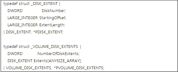 [그림 16] IOCTL_VOLUME_GET_VOLUME_DISK_EXTENTS
