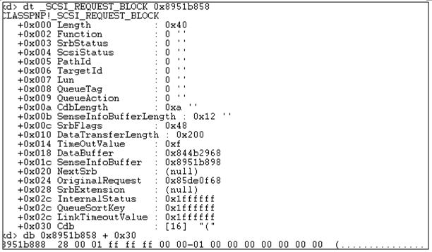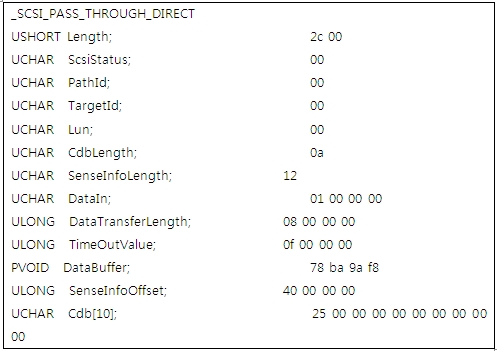 구성된 _SCSI_REQUEST_BLOCK 구조체는 아래와 같다.