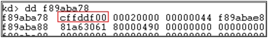 DataBuffer(0xf89aba78)에 해당 디스크 섹터의 크기가 구해진다.