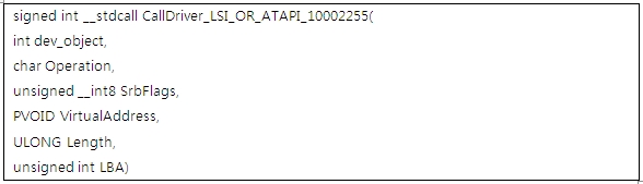 [그림 25]와 같이 구성된 구조체들을 Atapi.sys의 INTERNAL_DEVICE_CONTROL로 호출하면, 설정된 LBA(Logical Block Address) 위치로 데이터가 쓰여진다.