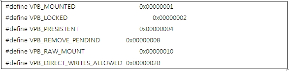VPB 구조체의 Flags 필드의 의미는 아래와 같다.