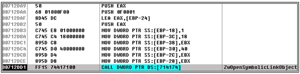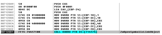 [그림 32] 유저 모드에서 ZwOpenSymblicLinkObject 호출