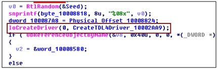 TDL4는 IoCreateDriver()라는 Undocument Function을 이용하여 TDL4 악성 기능을 수행하는 Driver Object를 생성한다.
