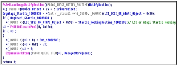 ExQueueWorkItem()을 이용하여 Work Thread를 생성하고 Atapi.sys의 StartIo() MajorFunction을 후킹하는데, 해당 Work Thread가 후킹을 보호하는 역할을 한다.