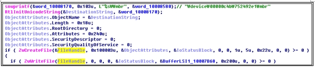 MBR을 감염시킨 TDL4는 PnpManager의 드라이버에 자신의 디바이스를 생성하고 VPB(Volume Parameter Block)에 TDL4 디바이스를 설정하는데, 이는 디스크 IO의 역할을 수행하기 위해서다.