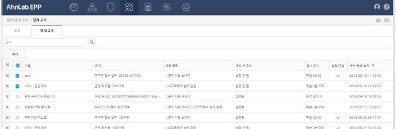 이 연계규칙은 APM뿐만 아니라 안랩 EPP 기반 하에 안랩의 다른 엔드포인트 제품을 동시에 사용할 경우 더욱 강력한 보안 효과를 발휘한다. 예를 들어 APM, V3, 안랩 EDR을 사용하는 고객이라면 V3의 의심행위와 APM의 특정 패치 미적용을 AND 조건으로 설정하고 이 조건이 충족될 경우 관리자 알림과 안랩 EDR에서의 네트워크 격리 조치를 설정할 수 있다.