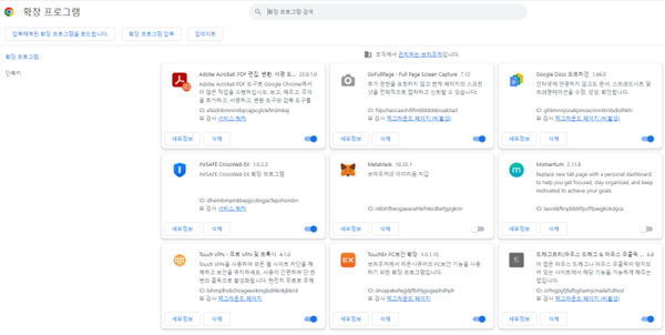 확장 프로그램은 웹 브라우저 기능을 확장하는 유용한 툴이지만, 악성 확장 프로그램이 포함될 수 있어 개인정보를 탈취하거나 보안을 약화시킬 수 있다. 따라서 반드시 신뢰할 수 있는 검증된 확장 프로그램을 사용해야 하며, 사용하지 않거나 불필요한 프로그램은 삭제하는 것이 보안을 강화하는 데 도움이 된다.