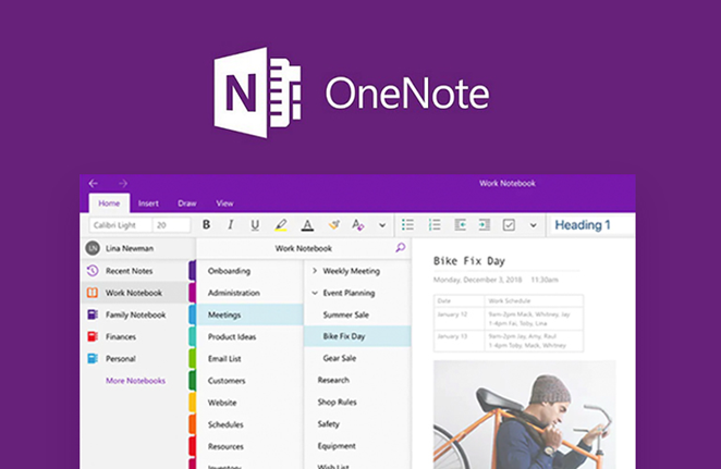 마이크로소프트 원노트(Microsoft OneNote)는 일반 노트북과 UI가 비슷해 쉽고 빠르게 메모를 관리할 수 있다. 펜을 지원하기 때문에 필기할 수 있으며, 원노트에서 워드, 엑셀, 파워포인트 파일을 편집할 수 있어 오피스 문서와 통합도 가능하다. 또한, 동영상, 오디오 메모 기능도 제공한다. 하지만 윈도우 운영체제(OS)에서만 사용할 수 있고, 무료 버전에서는 메모의 크기, 파일 첨부 기능이 제한적이며, 클라우드 저장소와의 연동이 부족하다는 단점이 있다.