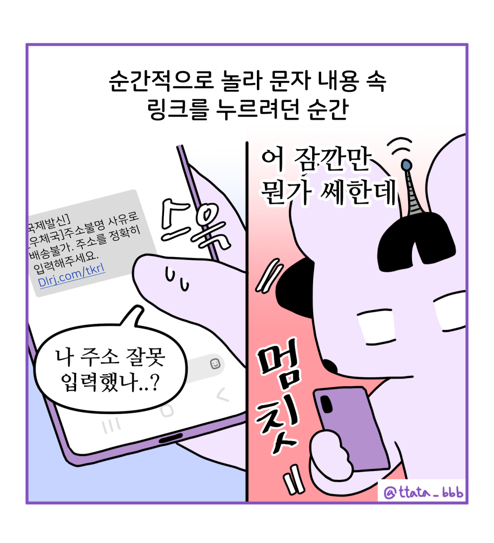 [V3툰] 해외 직구하다 스미싱 당할 뻔한 후기