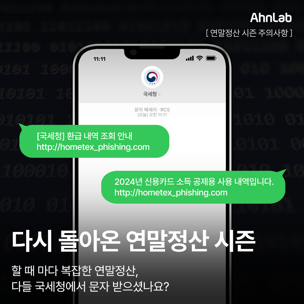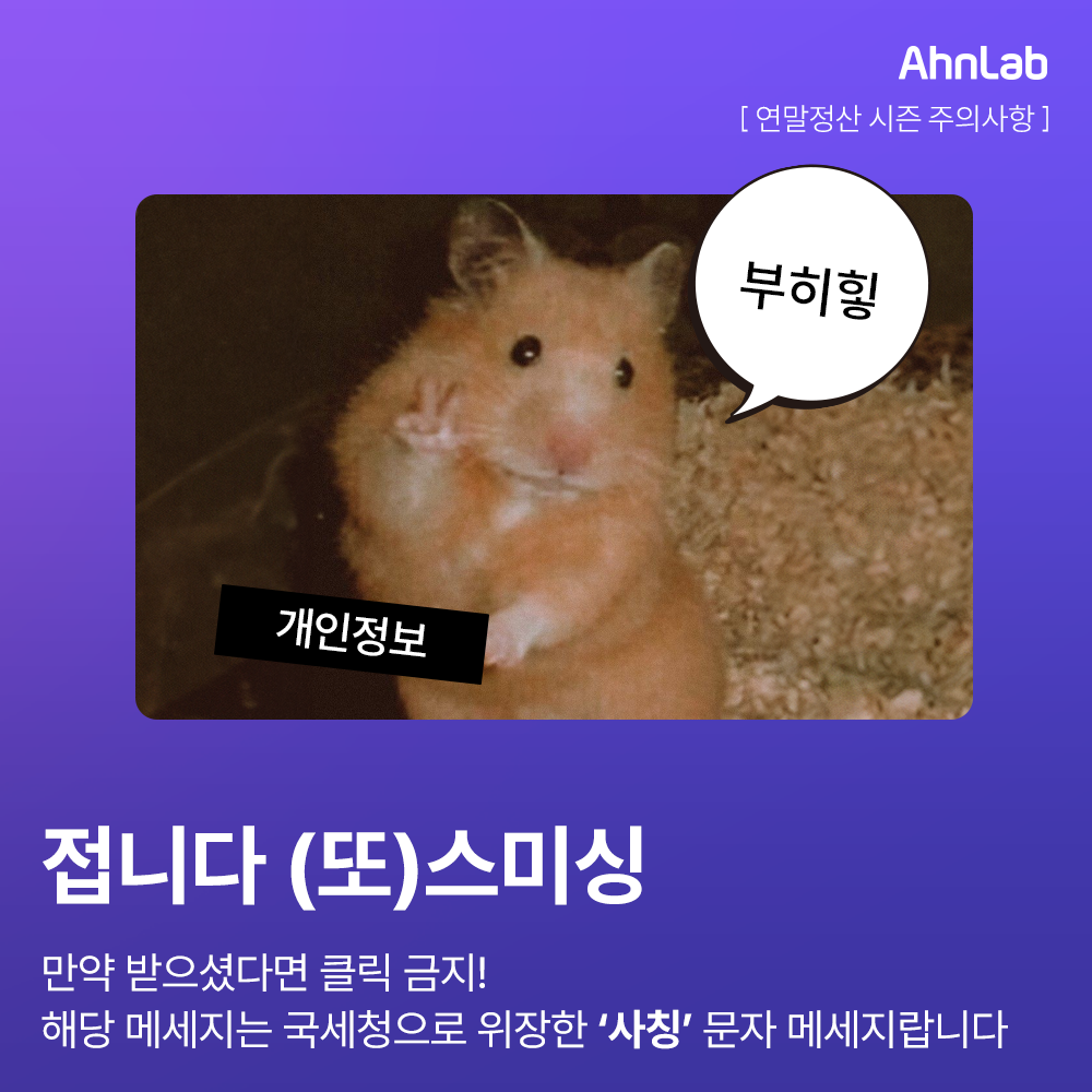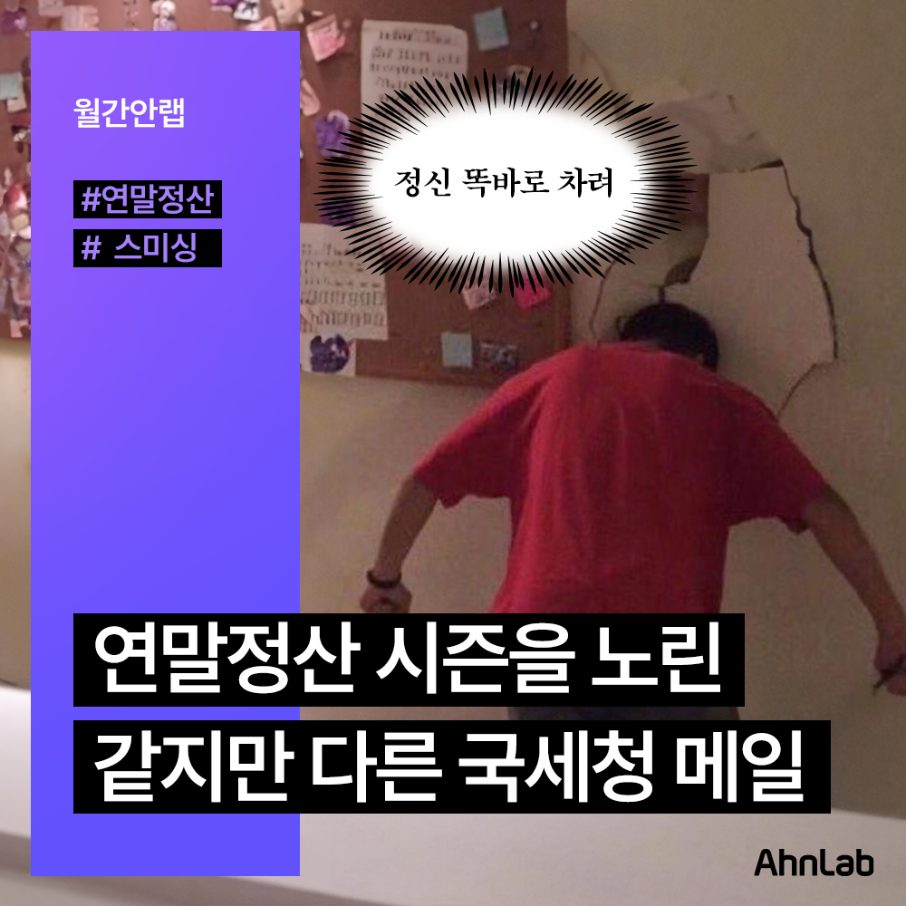 국세청을 사칭한 스미싱 메일이 기승을 부리고 있어요.